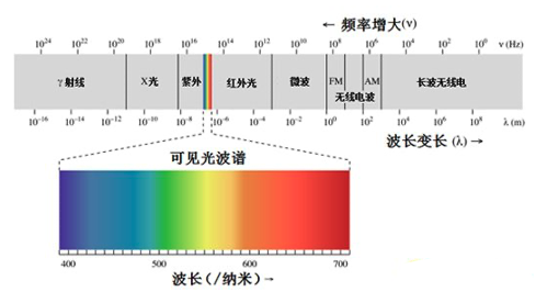 電磁波譜不僅包括可見光圖像,而且包括非常豐富的其它電磁波譜,不同頻段的電磁波譜在航空航天、工業生產和人們生活中起作非常重要的作用,如下圖所示: