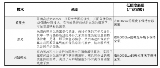 對于全彩高清,雖然目標一致,但在技術的闡述上,安防已經開始出現了分歧,在技術上也形成了超星光、黑光、AI超微光等流派,這不像在普通紅外般同質的變現,流派之爭,巨人之舞下,在「光」的舞臺上的較勁,成了當下安防技術競爭最具看頭的焦點之一。