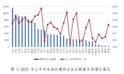 二、2022年上半年各地區(qū)建筑業(yè)基本情況