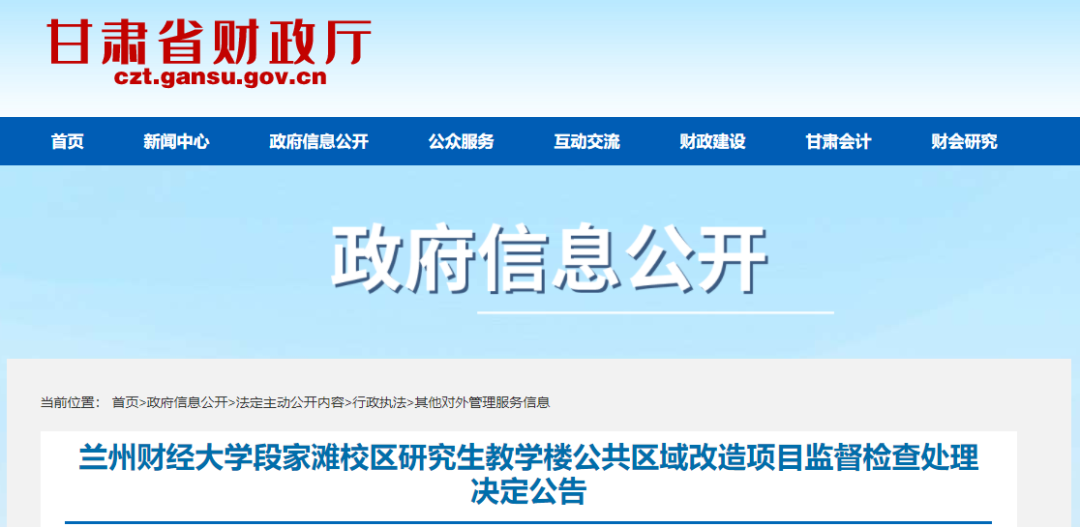 我機(jī)關(guān)依法對2022年6月22日收到的對“蘭州財經(jīng)大學(xué)段家灘校區(qū)研究生教學(xué)樓公共區(qū)域改造項目”采購文件的舉報進(jìn)行了監(jiān)督檢查。